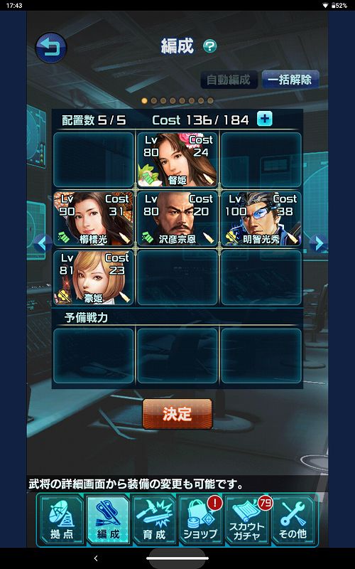 怪獅子のBattle4で縦陣を作る+櫛橋さんの兵器準備です。