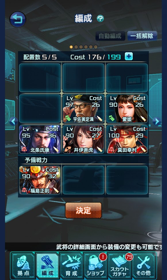 注意:幸村の敏捷を高くし、氏康以上にしておく。