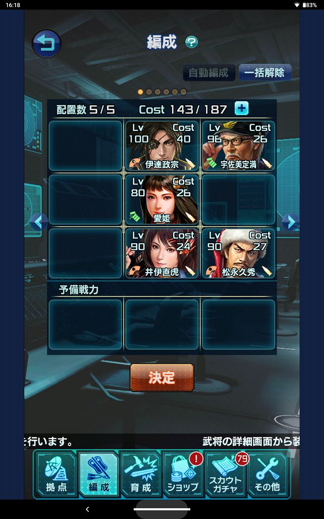 ※注意点伊達政宗公に手裏剣装備のこと敏捷1500超えさせておかないと、吉兆破壊が飛んでくる