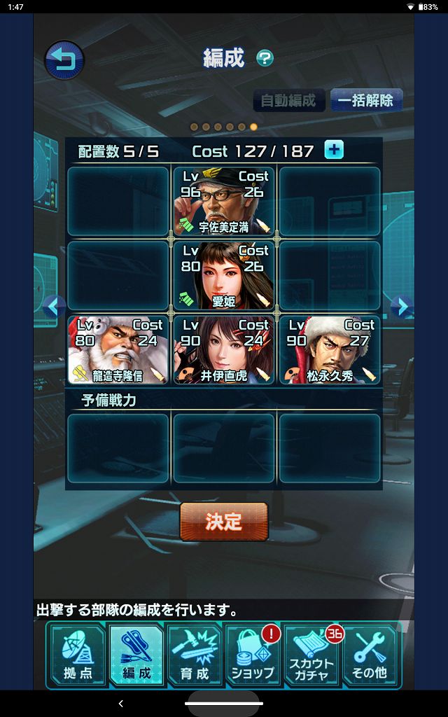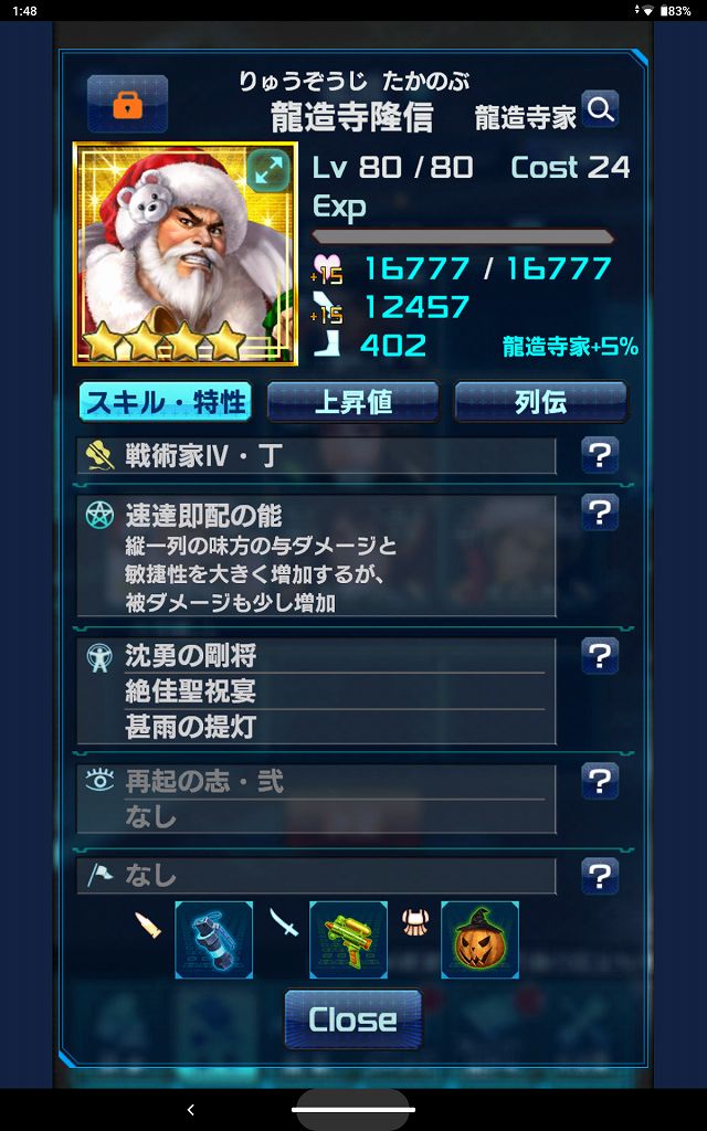 現状フレ頼みフレ:☆5前田慶次ボス戦までに兵器クリティカル→麻痺を用意しておくこと