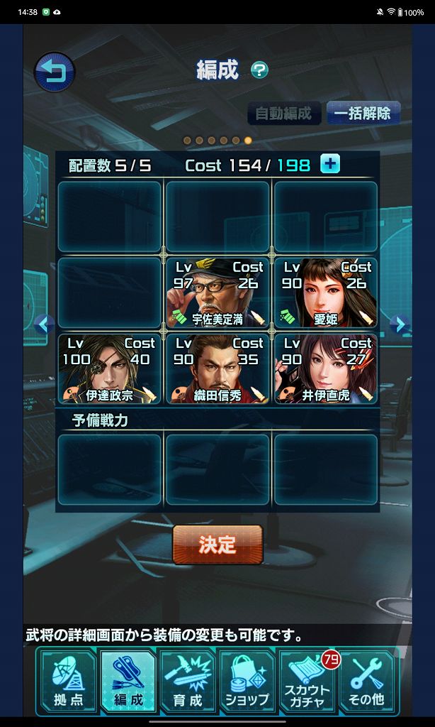 Battle4:どうやっても2撃喰らうことになる 中央前列に信秀さん or 政宗さんを配置し受けるように