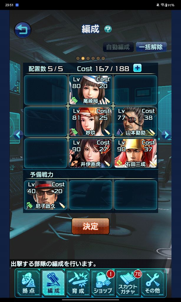 Battle2の鉄翼鳥には敏捷負けするので、受ける武将を決めておく