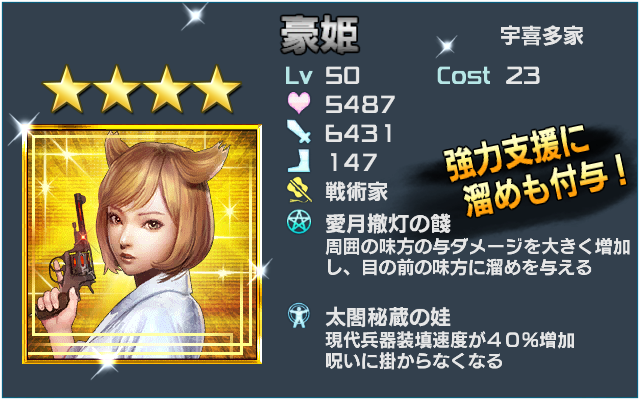 02 戦術家 2020.05.05 ☆4, 徳川家, 徳川家康 壮年「明智光秀」との違いは、なんと言っても新種族に対応できること。「光秀」さんは、「妖」や「機」が来ると、追撃しませんからね… 通常のボスな […] 続きを読む