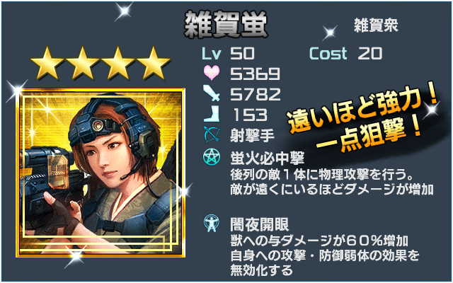 回復役、というわけにはいかなそうなので、 ●バフ+デバフ役にする ●兵器役にする という二択になるのでしょうか。 もちろん両方いけるのであれ […]