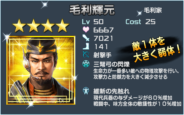 物1.40+術1.40 ですか… 「戦国無双」の早川殿を使っていた身としては、どう育てたらよいか… 射撃手はどうして育てる方向に悩むんですよ […]